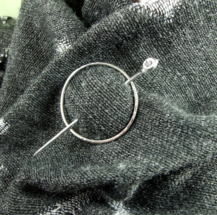 Shawl ring Measures approx 2 inches across and the pin is 3.25 inches.
