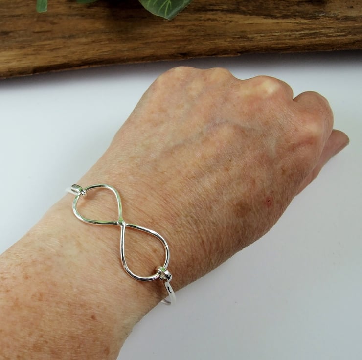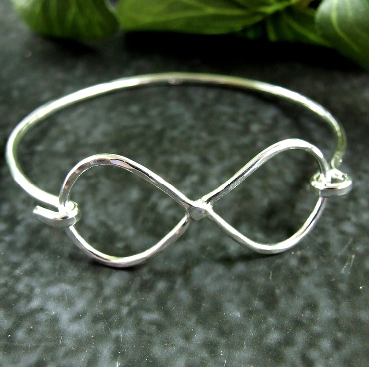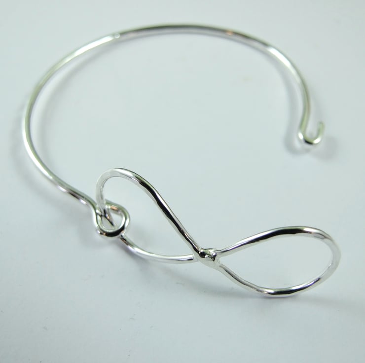 Hand forged Sterling Silver Infinity Knot Bangle. Tension Clasped Bangle to fit 16-17.5 cm wrist.