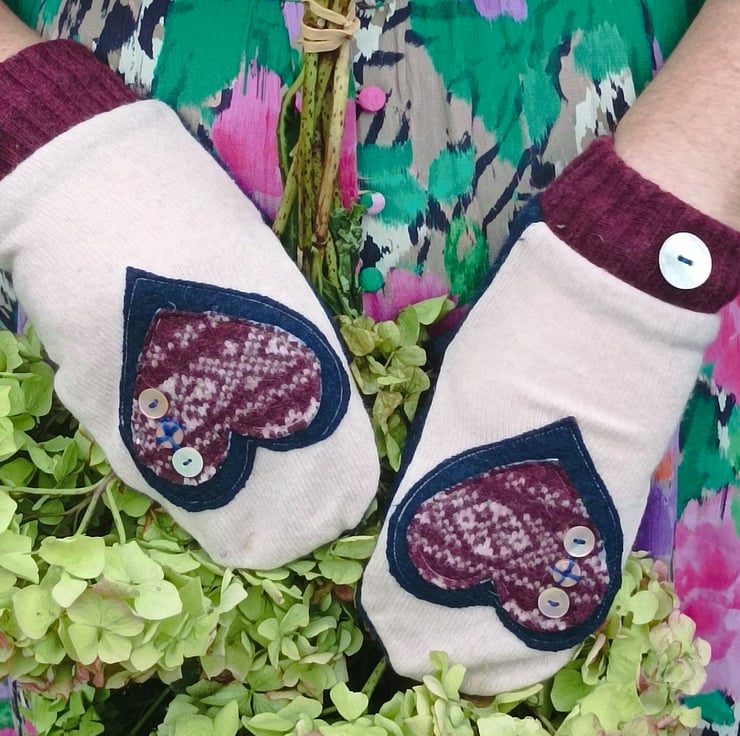 Fully lined cashmere mittens made from recycled cashmere jumpers. All my gloves and mittens are unique: they are designed and created by myself. I have a degree in contemporary crafts and like to work from sketchbooks and photographs to create patterns for Knitting and crochet. I particularly love to use high quality and luxury yarns in my designs as they give them a feel of absolute luxury.