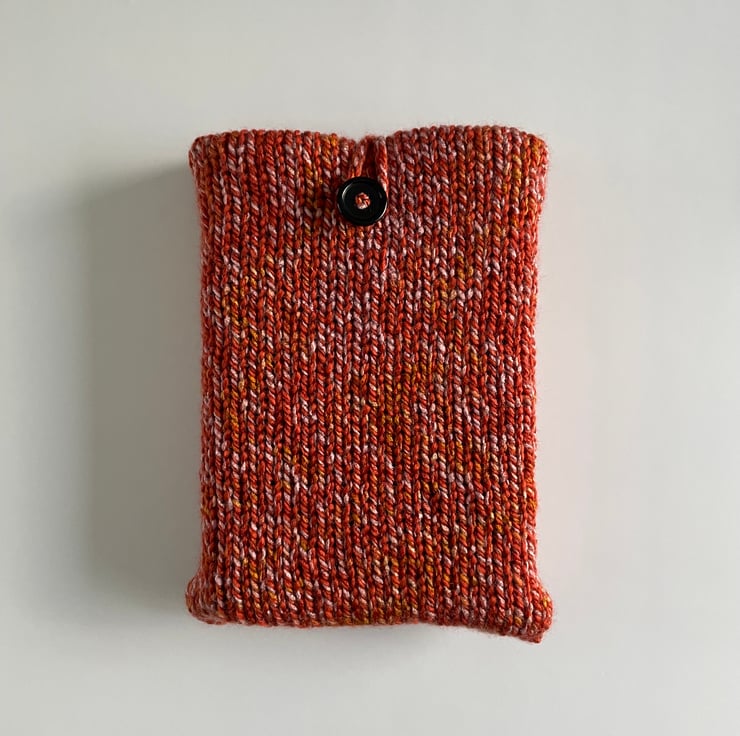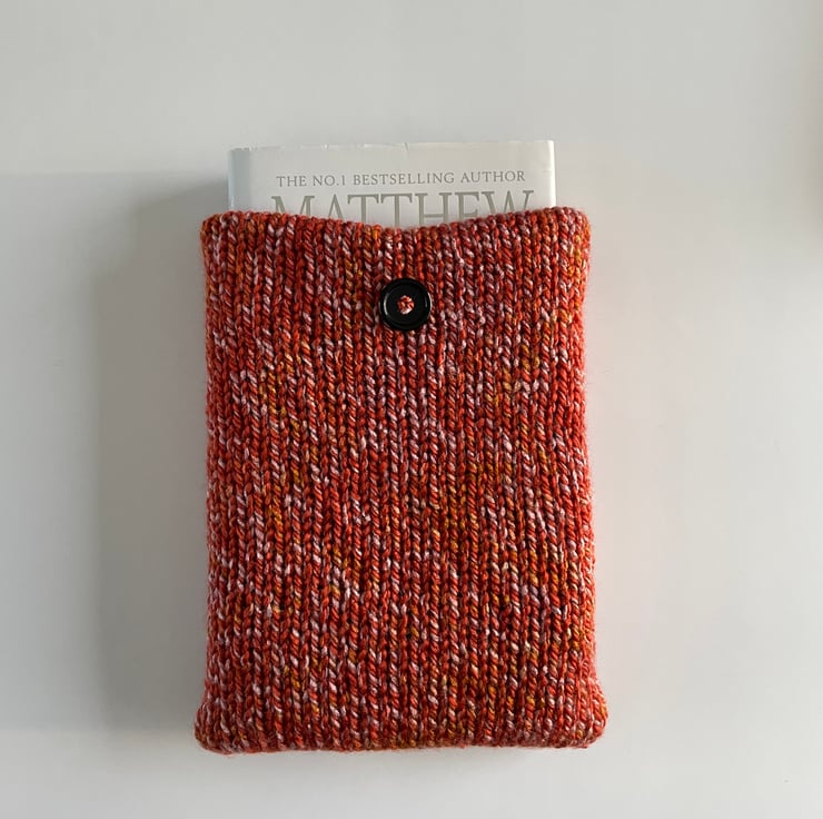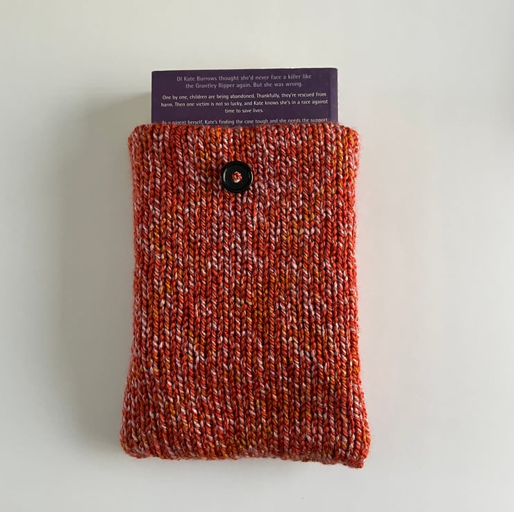 This double layered knitted book sleeve is big enough to hold a large 450 page paperback or a hardback book.