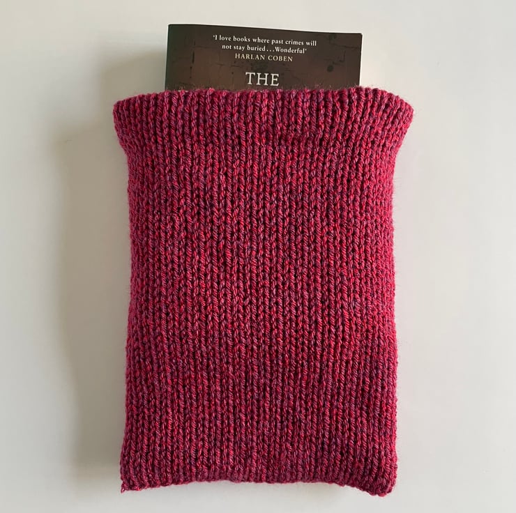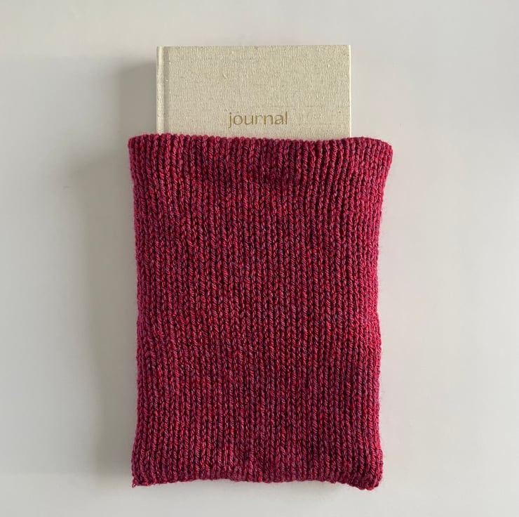 This double layered knitted book sleeve is big enough to hold a A5 Journal or paperback book.