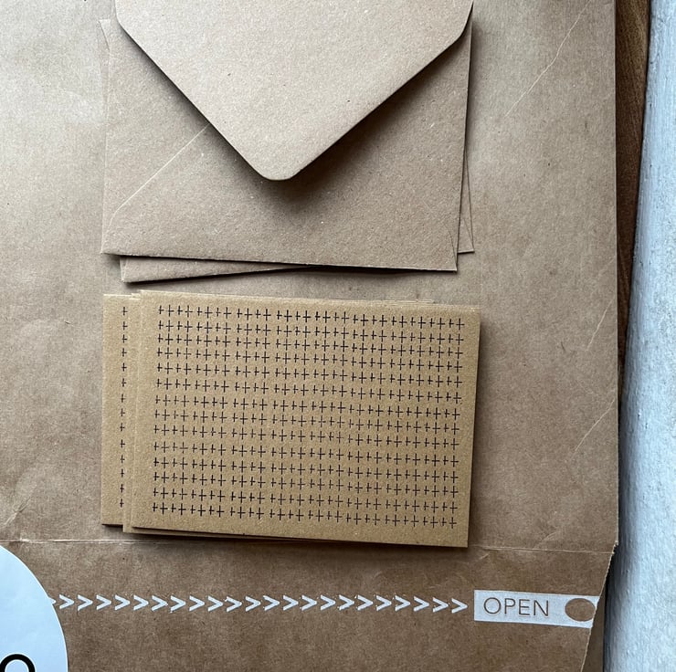 10 Note Cards & Envelopes. Little Crosses. Recycled Blank Cards. Hand Printed.
