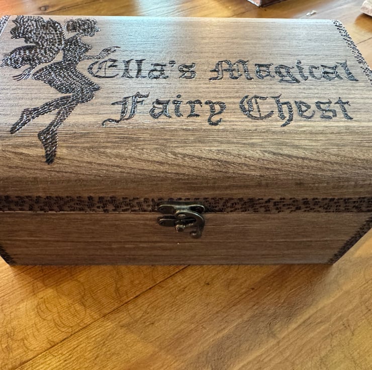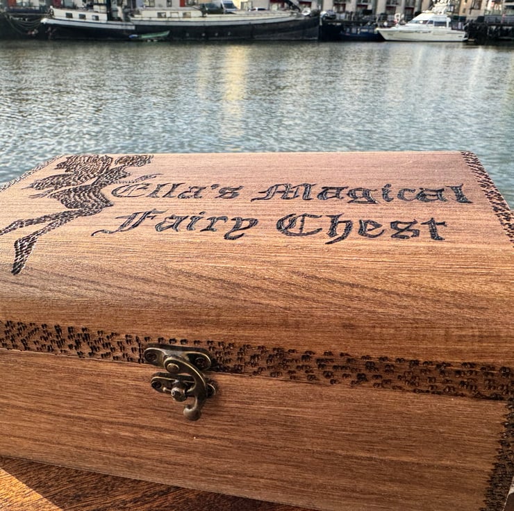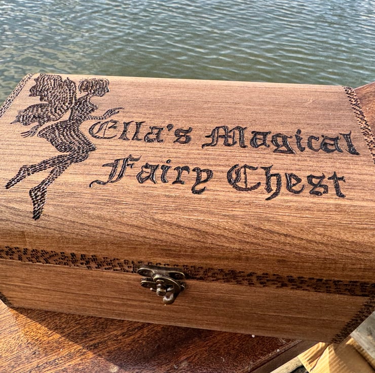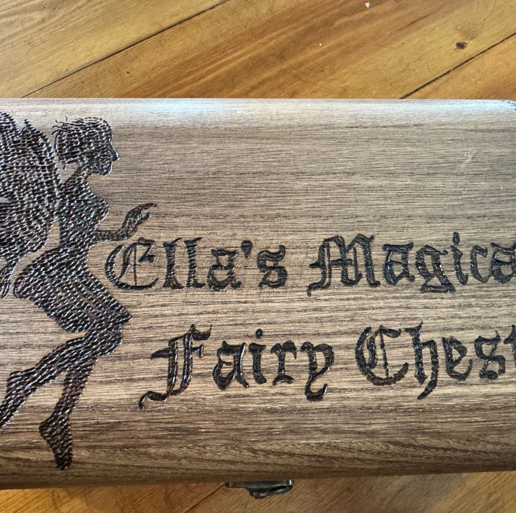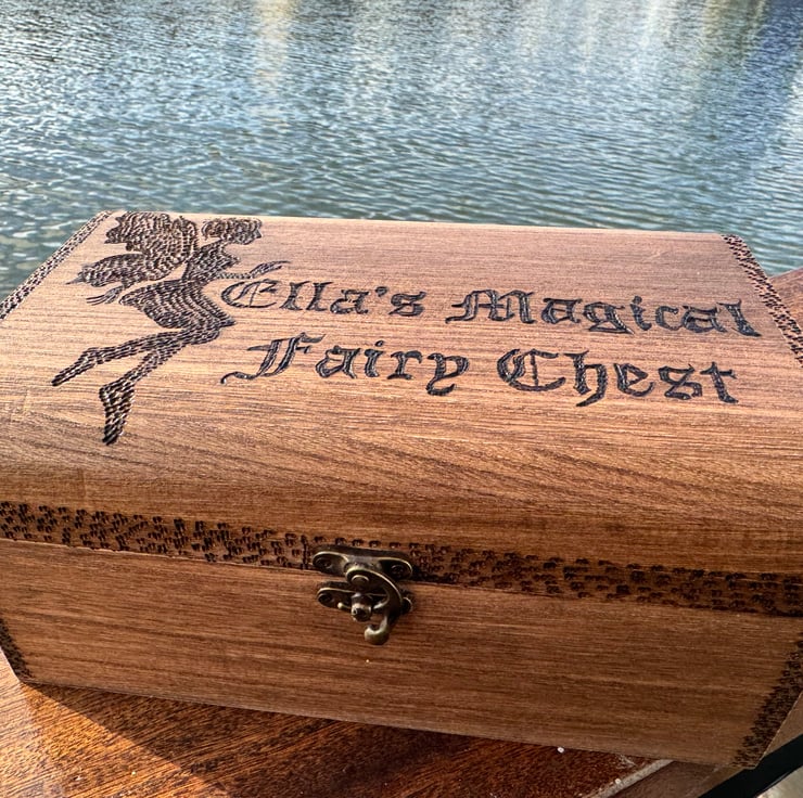 Personalised fairy box, wooden chest, hand burned with pyrography.
