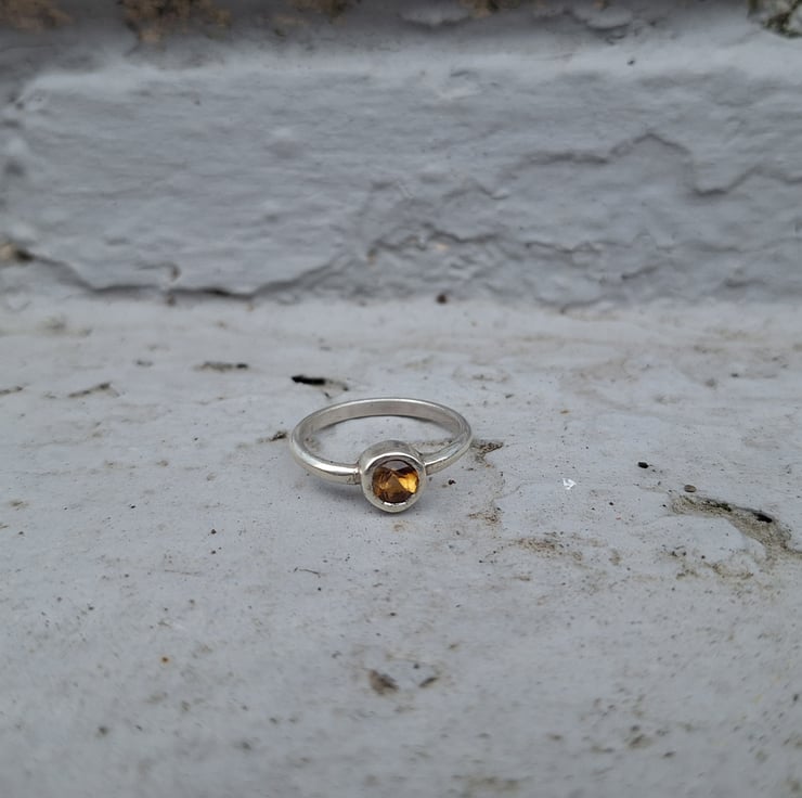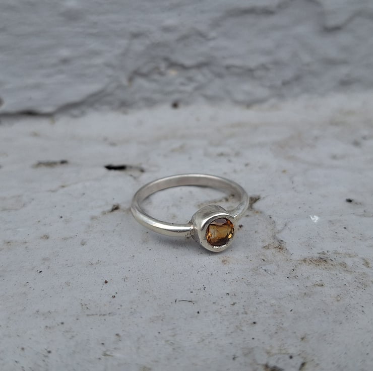 This madeira or cognac citrine is such a beautiful stone. It's a variety of agate, just like amethyst, and it has this gorgeous warm orange colour. There's a lot of variation in this particular stone, it's almost red on one side and it's so pretty. This is a faceted stone so there's a lot of refraction, light and sparkle.
