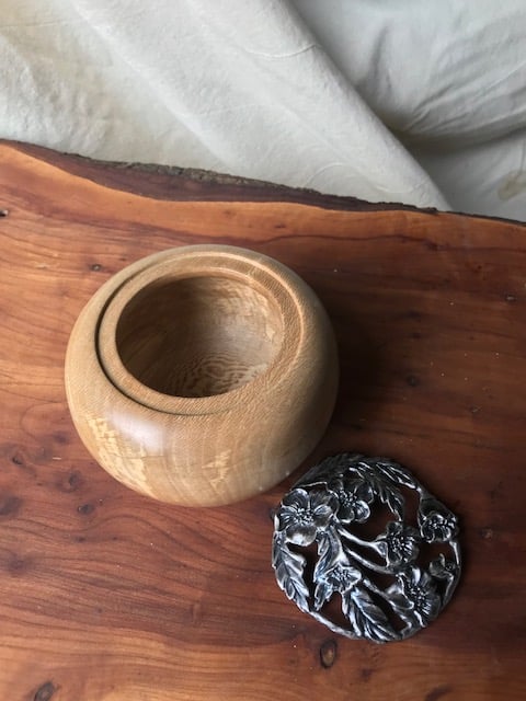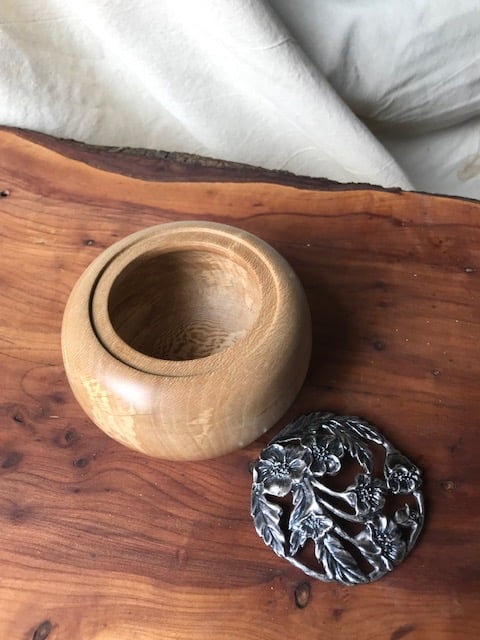 lovely filligree metal work (bought in, not made) lets the scent out.