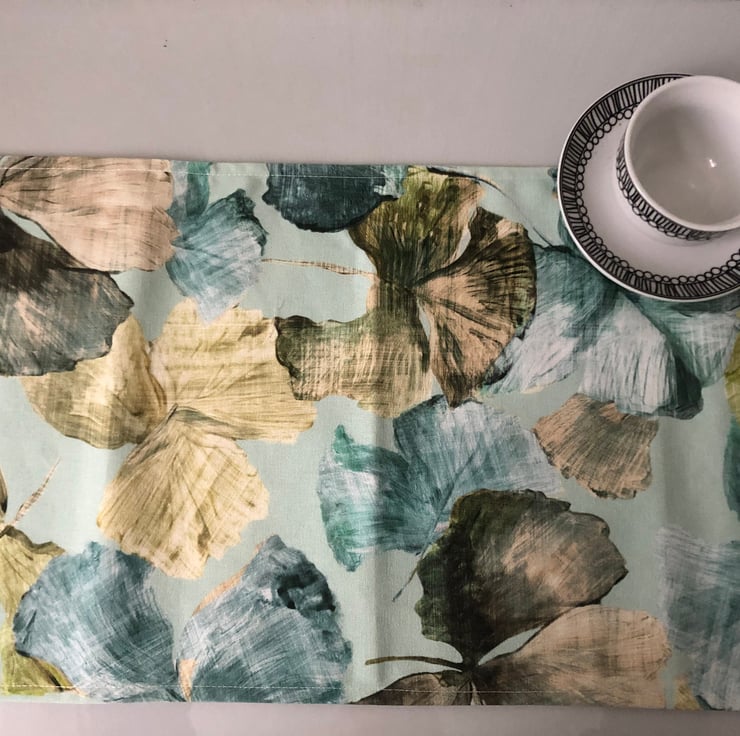 6.5ft Blue and Cream Modern Tropical Floral Table Runner