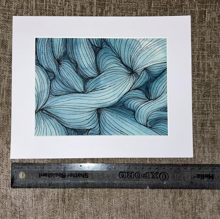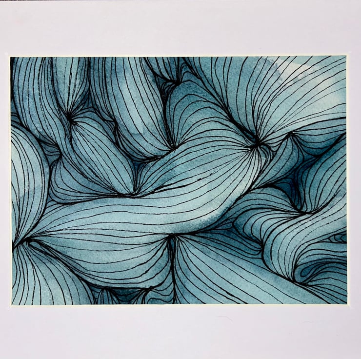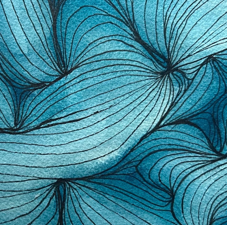 An abstract original painting in watercolour and fineliner, representing the “fabric” of the ocean.