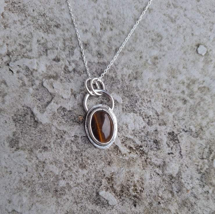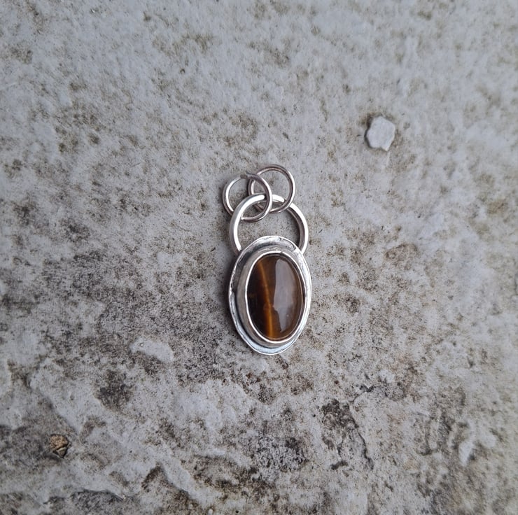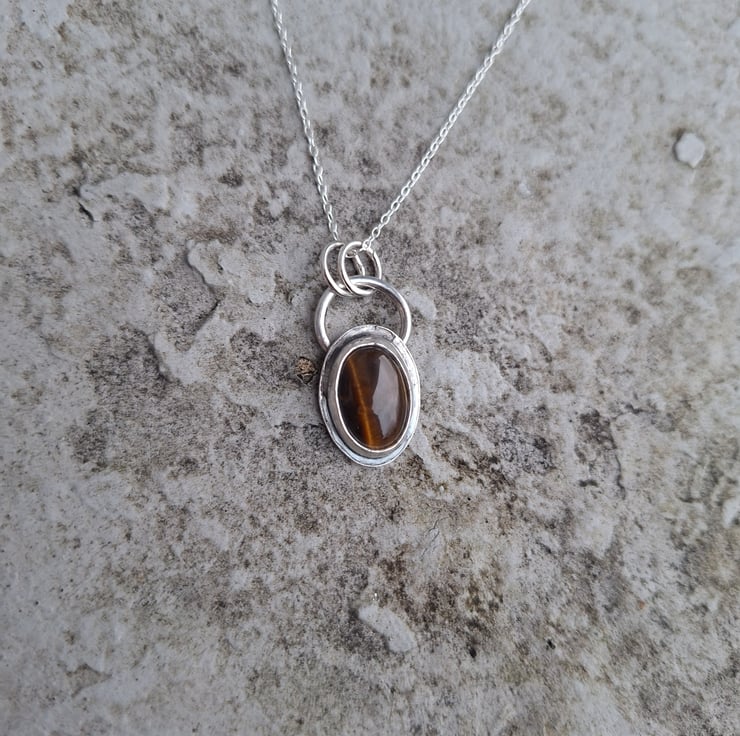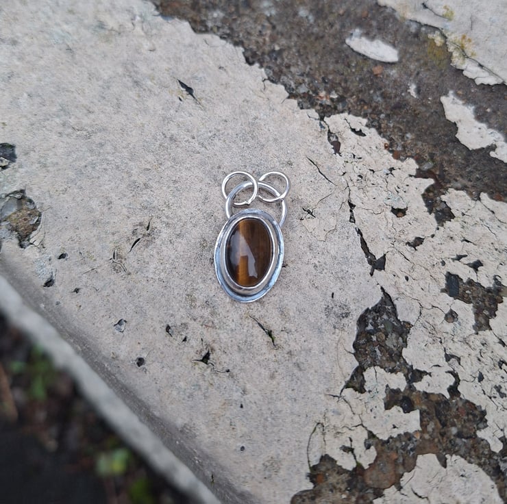I love tigers eye. This smooth oval cabochon has a gorgeous shimmer and banding to it. It's set simply in 925 recycled sterling silver with a double bail.