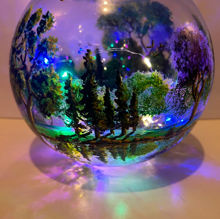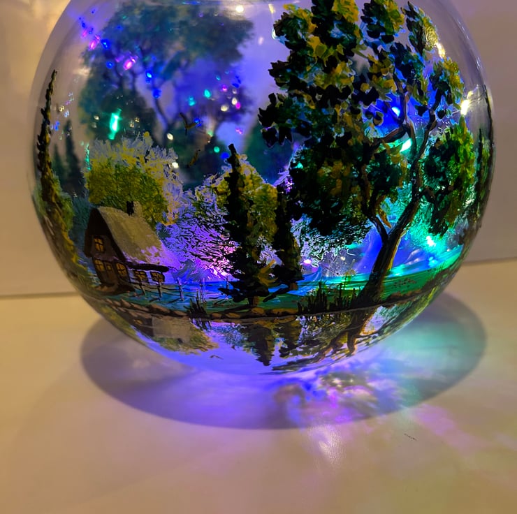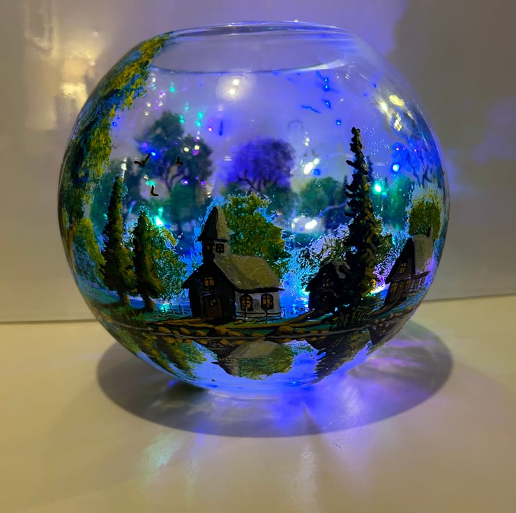 A hand painted and fired glass bowl vase by Andrew Jenkins