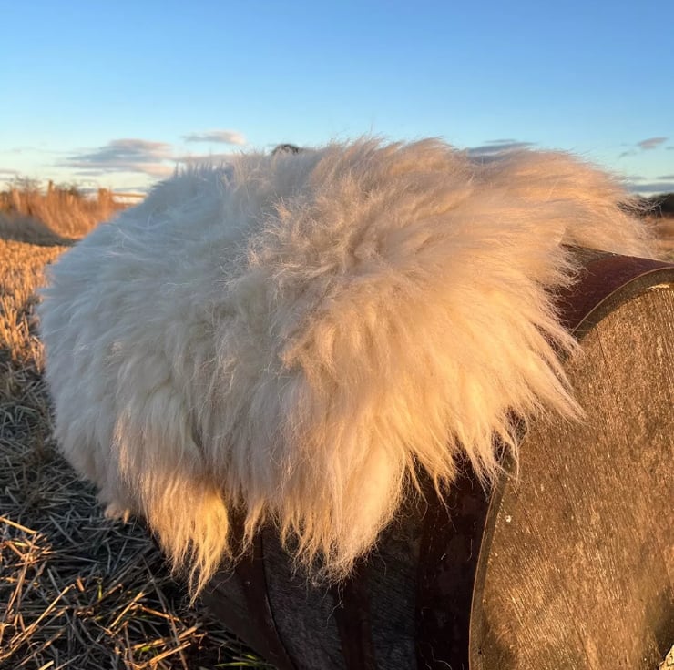 This rug is made from the fleece of a Llyen sheep on a farm on the outskirts of Ellon in Aberdeenshire. Llyen are hardy white sheep who make fantastic mothers!