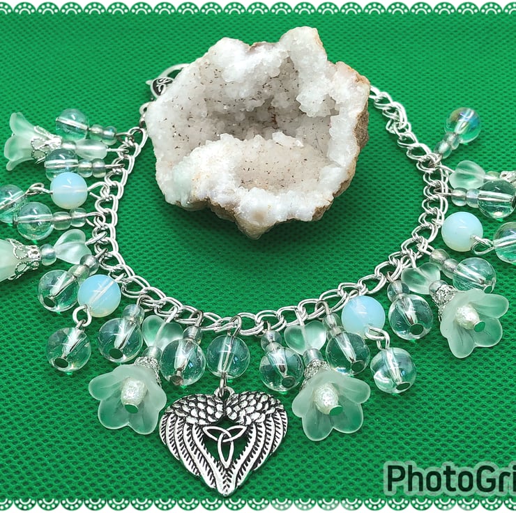Created using this Angel wing charm, lucite flowers, opaline & clear lustre beads. Nickel free