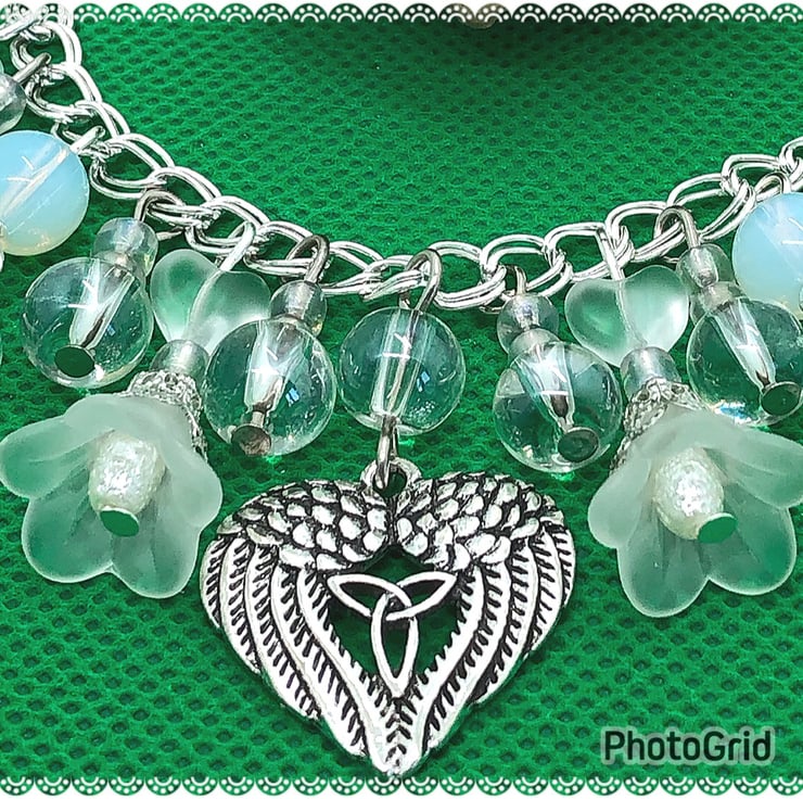 Created using this Angel wing charm, lucite flowers, opaline & clear lustre beads. Nickel free