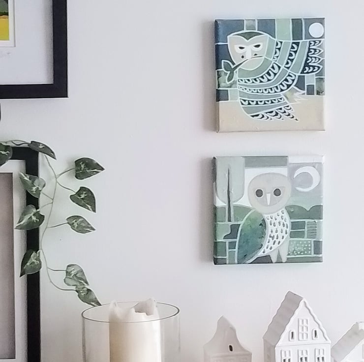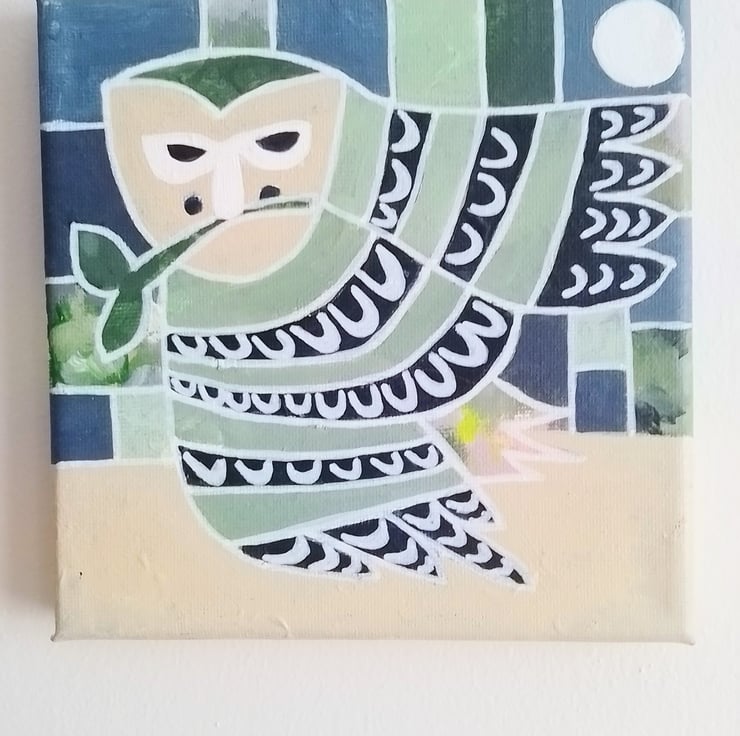 A really cute Mid-century inspired Original Painted Owl Canvas in Acrylic Paints.