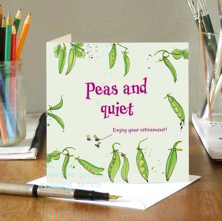 Celebrate retirement with this funny and punny retirement card. Perfect for the keen gardener who now has more time on their hands. Let's hope they like peas.