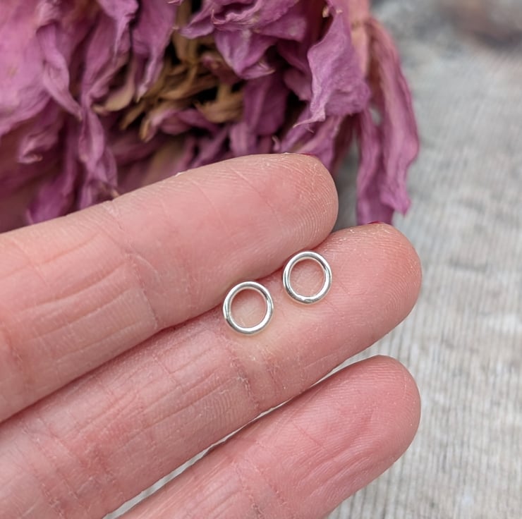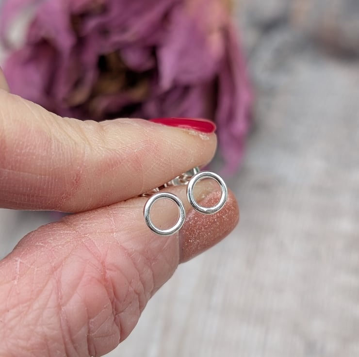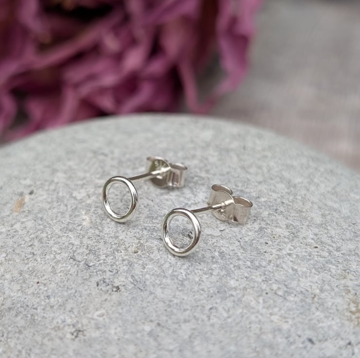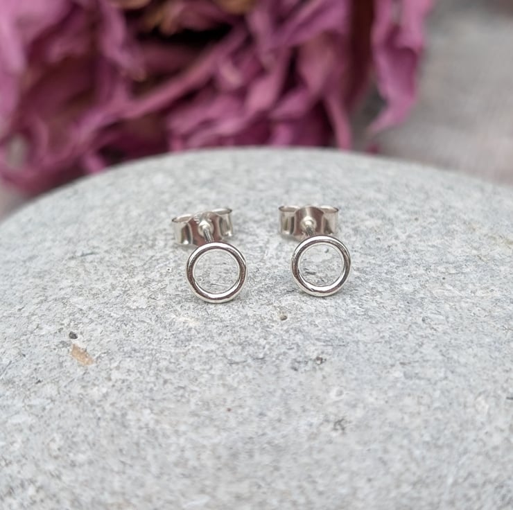 Recycled Sterling Silver Small Circle Stud Earrings.