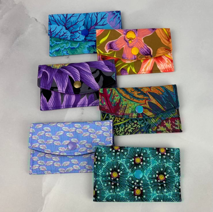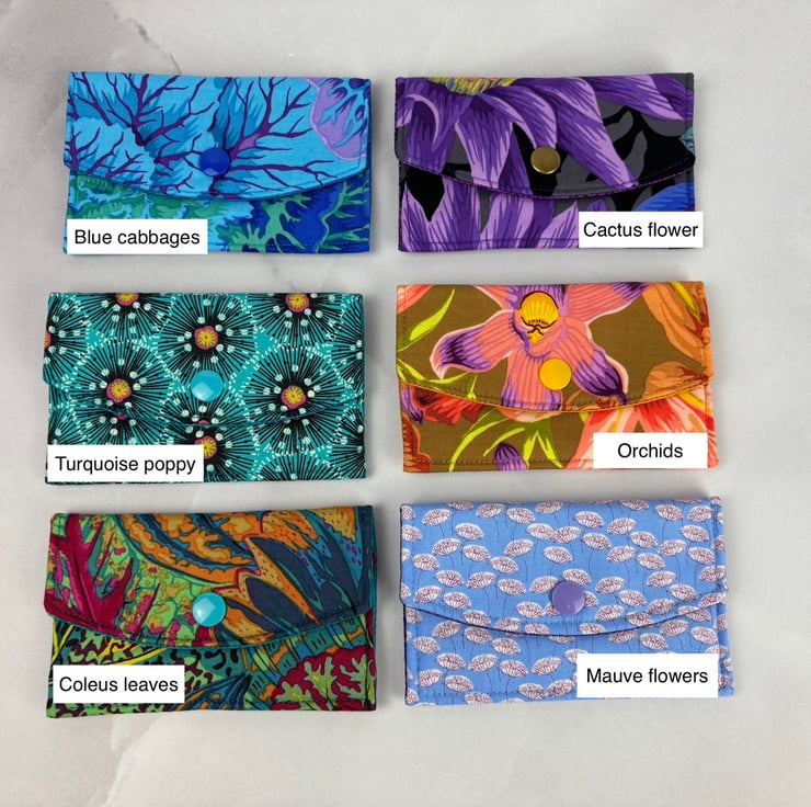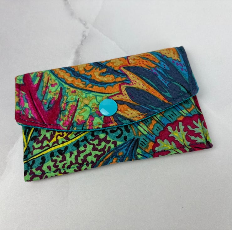 Each of my unique card cases is individually made by me in my relaxing and tranquil little West Sussex garden studio so the pattern placement and popper may vary slightly.
