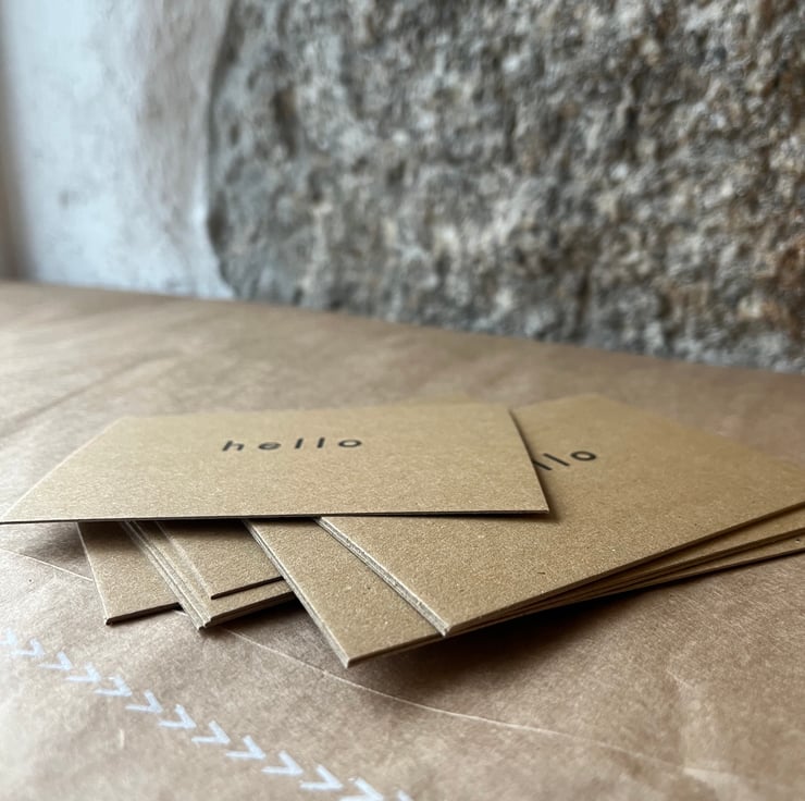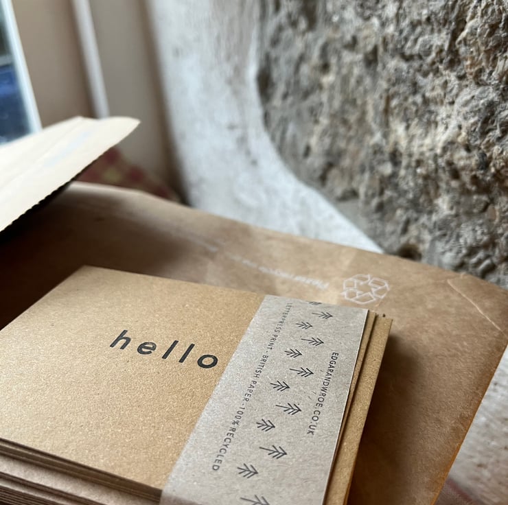I use the finest quality relief printing ink and 100% recycled papers - both manufactured in England.
