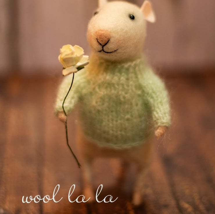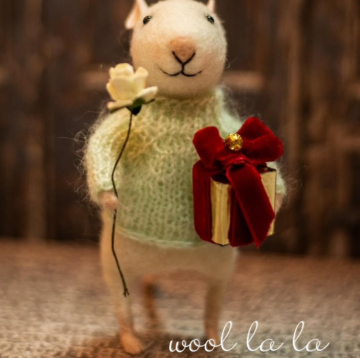 Robert the mouse is a symbol of joy and care, perfect for any holiday! This handmade toy is made of natural wool using the dry felting technique. Robert holds a gift and a flower in his paws, which makes him a universal gift for family and friends: for a birthday, anniversary, wedding or any other important event. Size: height 9 cm. Materials: natural wool. Each toy is made with love and looks exactly like in the photo.