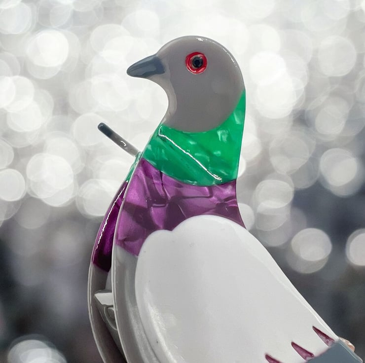 Please note the Pigeon clip will come with the red eye photographed in the studio images -not the plain eye on the image of the clip being worn.