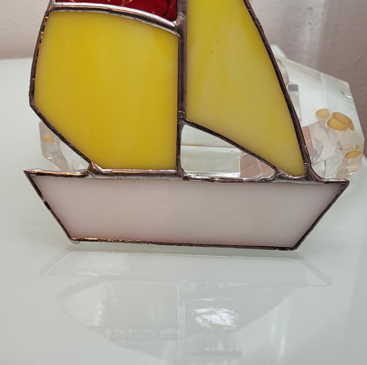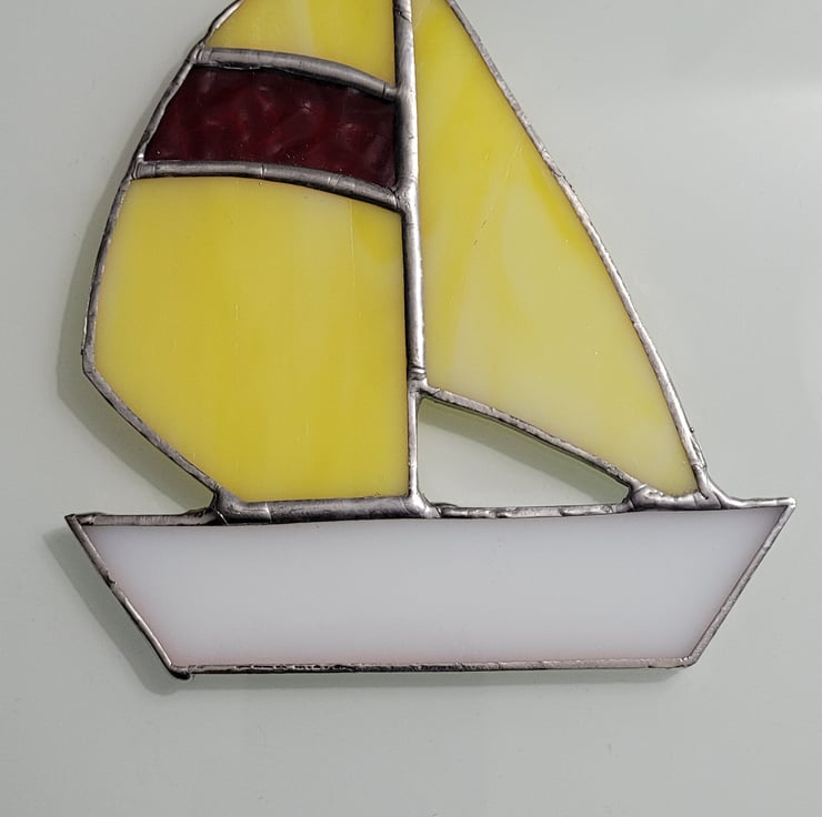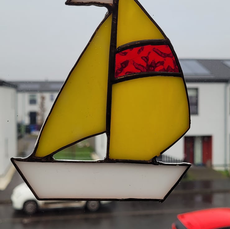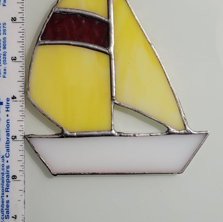 Small sail boat suncatcher nautical theme ideal for window hanging.size 6" 4.5