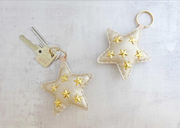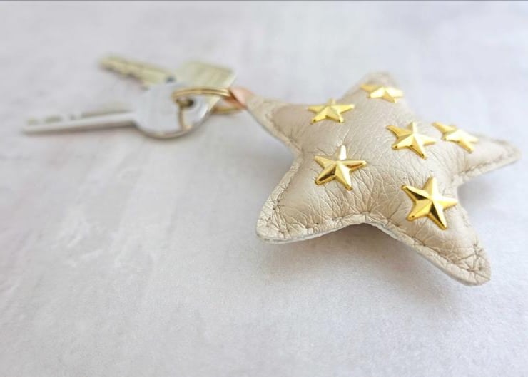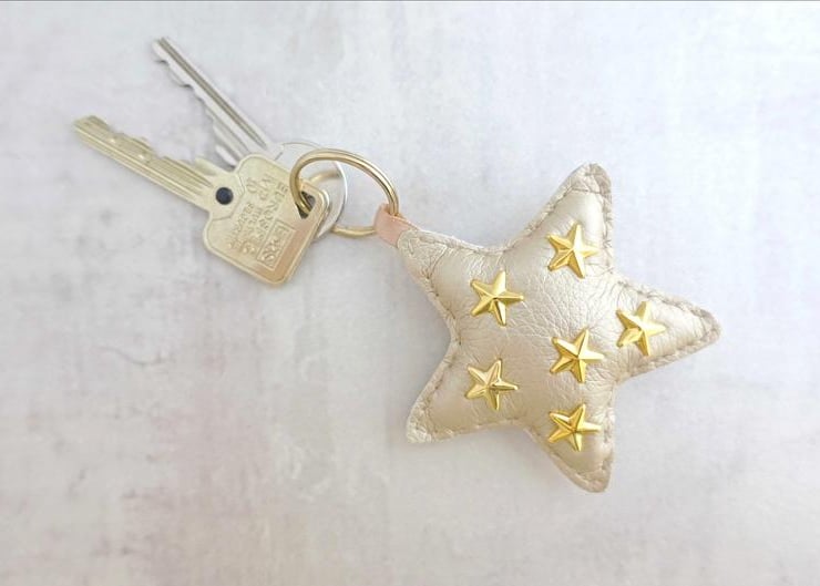 – Star is attached to a 25mm gold split key ring with some ribbon.