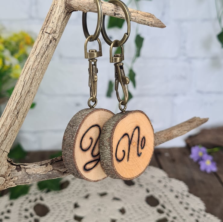 A fun and inspiring addition to the keys/bag and the mind, this hand burned keyring will help you make decisions when you just can’t decide