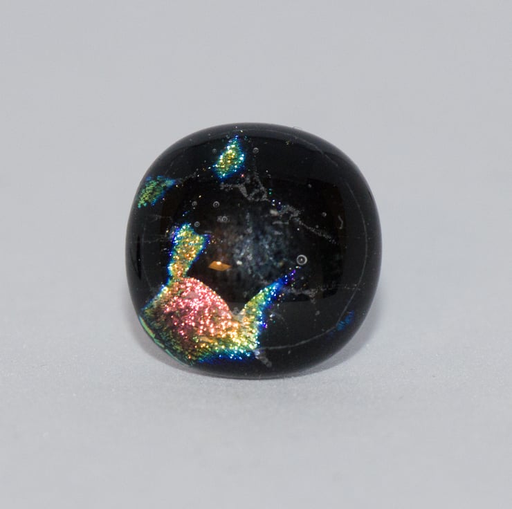 We have a range of earrings created from dichroic glass - we love working with it. The colours that Dichroic Glass show continues to amaze and surprise us. When we open the kiln we are always looking to see what the kiln-fairies have been up to.