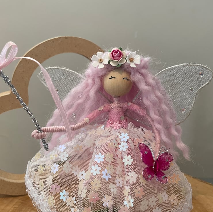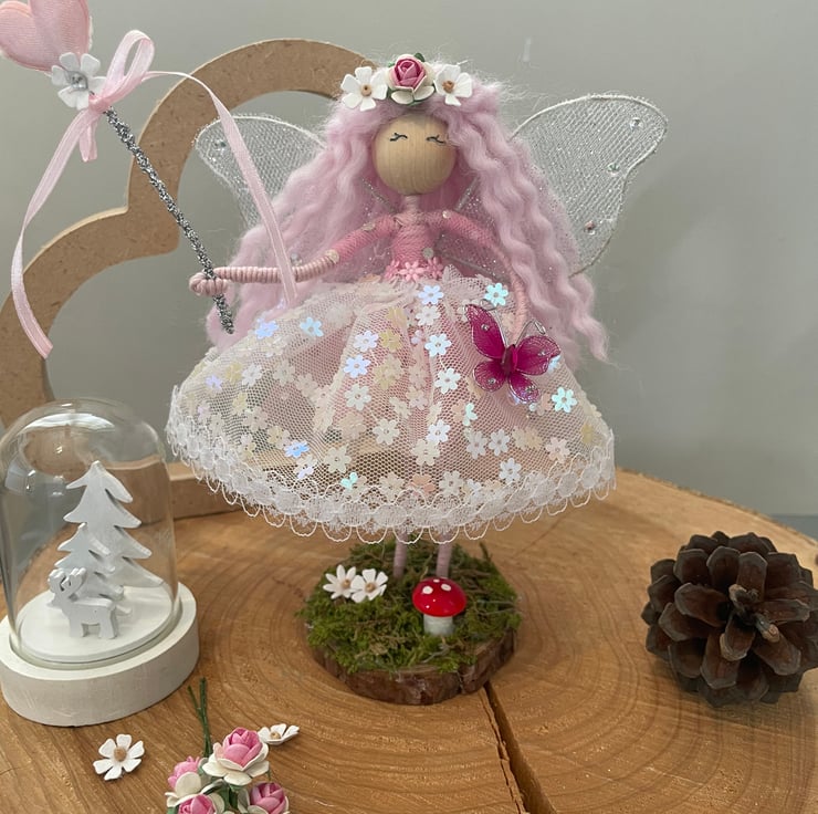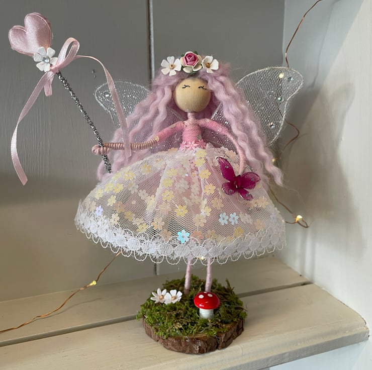 Add a little fairy magic to your home or gift to that special person with this beautiful handmade one of a kind woodland flower fairy .