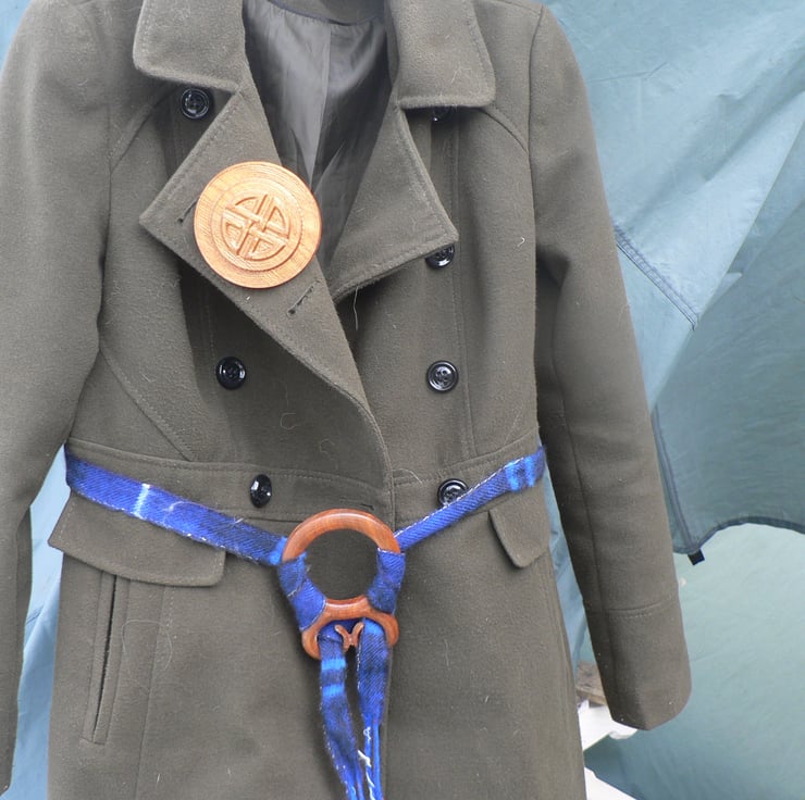 A troll cross designed to be worn with a cloth belt or ribbon tartan or other depending on your style or the occasion with a large Viking/ Celtic shield cross design brooch for wearing at the shoulder