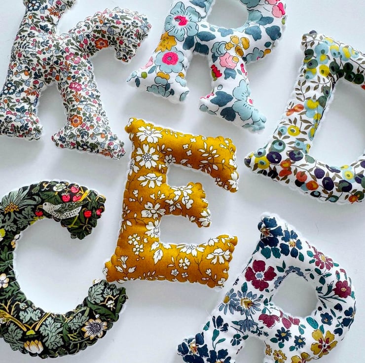 Liberty Fabric initials. These can either be a single initial or you can order the amount you want to make a name or word.