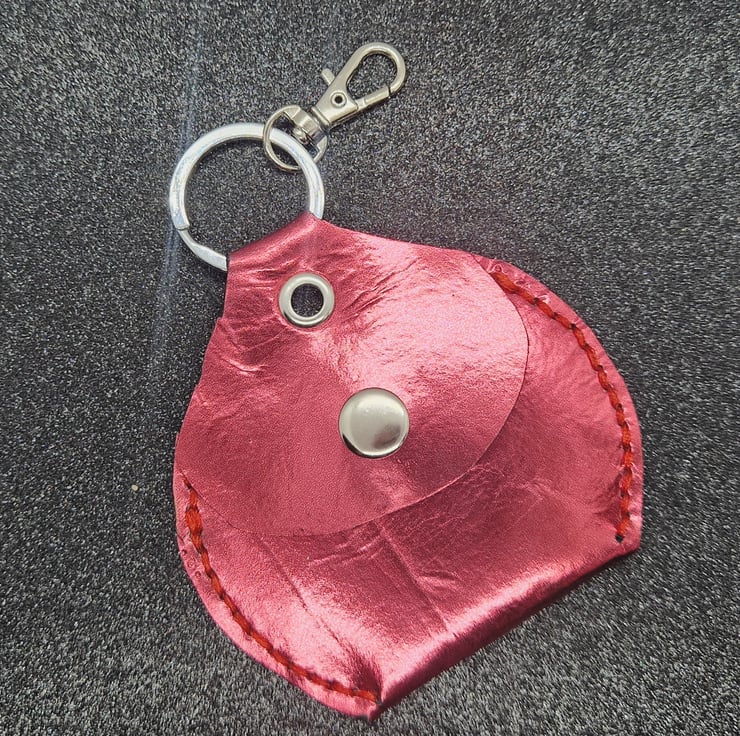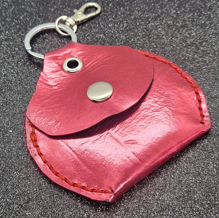 Each piece is hand cut and punched, so not digital cut precision, then hand-stitched with a strong waxed co-ordinated braid, again, not machined so not spirit level straight. If you want clone perfection, find it elsewhere. I’ve attached a keyring clasp so can be used as a bag decoration, a on a belt loop or with your car key.
