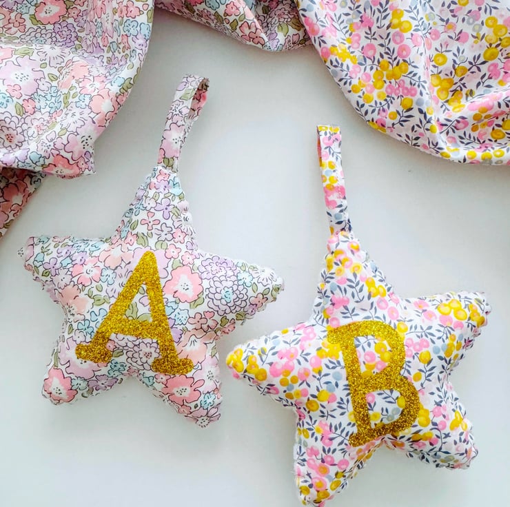 Each star measures approximately 11x10.5cm and has a matching fabric hoop for hanging.
