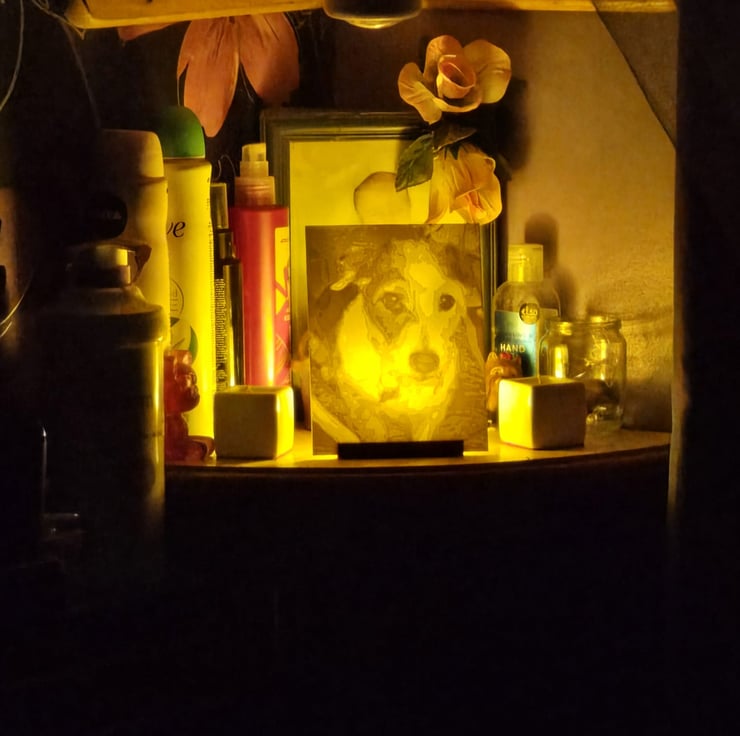 This was a custom order from a Friend who sadly lost her Dog recently, and found it hard to cope. I offered to make this Lithophane for her, and She loved it so much, it made her emotional. and she showed it to her friends who also loved it. and asked where they could get similar.