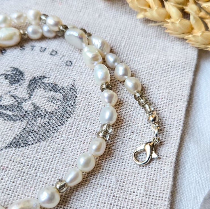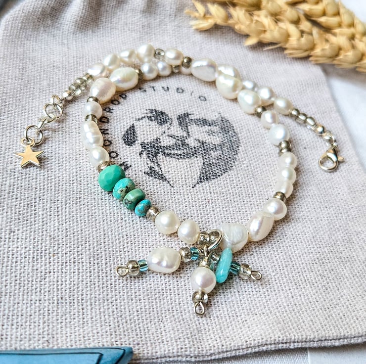 I’ve added a little cluster of hand-wrapped pearl and sterling silver charms at the centre, and finished it off with a little sterling silver star charm near the clasp.
