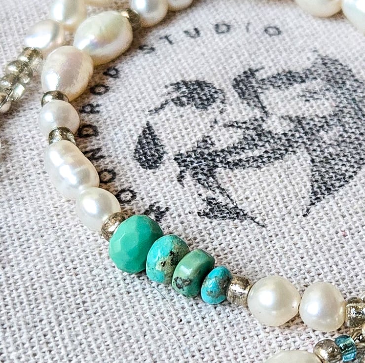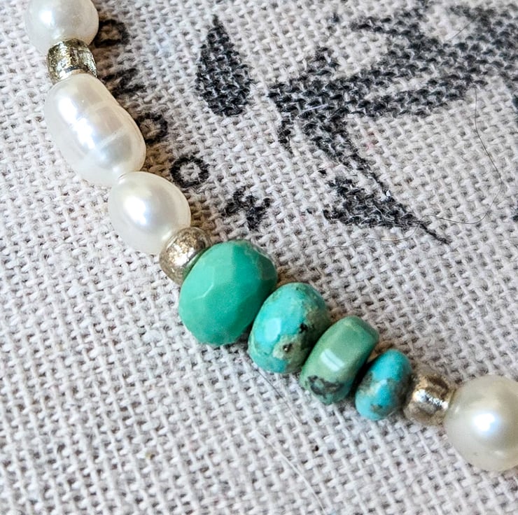 Welcome to my listing of this one-of-a-kind, handmade freshwater pearl and Turquoise gemstone beaded necklace!