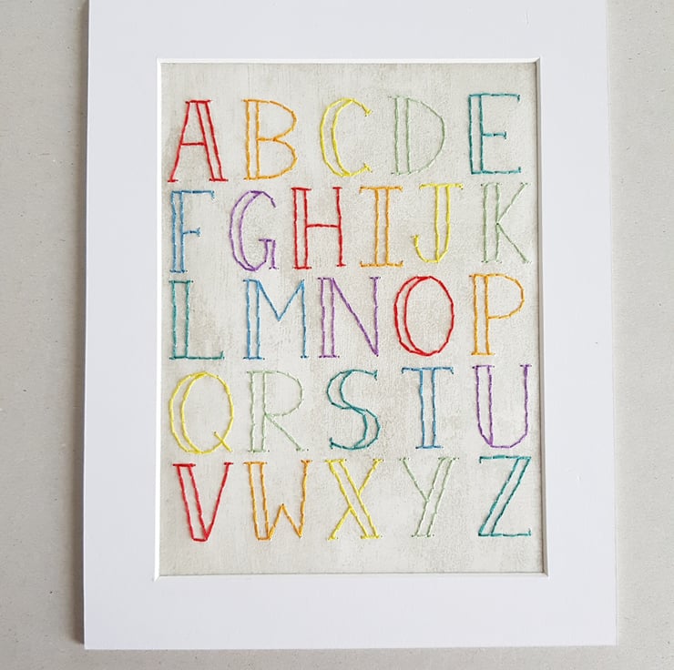 – The alphabet is hand stitched onto quality paper. Print on paper may vary making each wall art piece one of a kind.