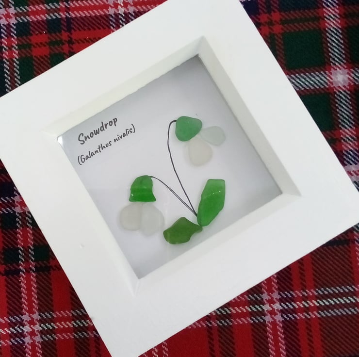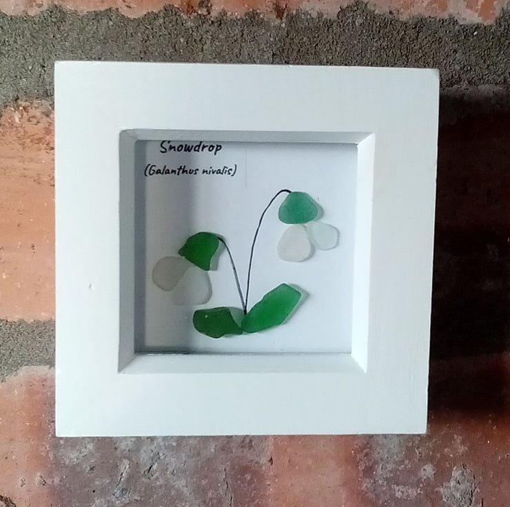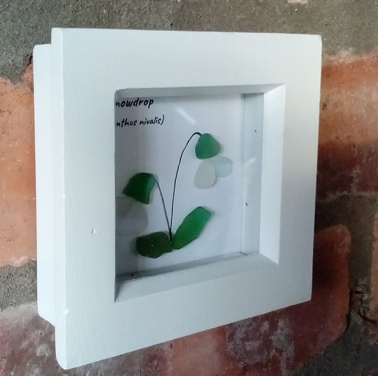 From my seaglass wildflower collection. A delicate snowdrop, ready for Spring.