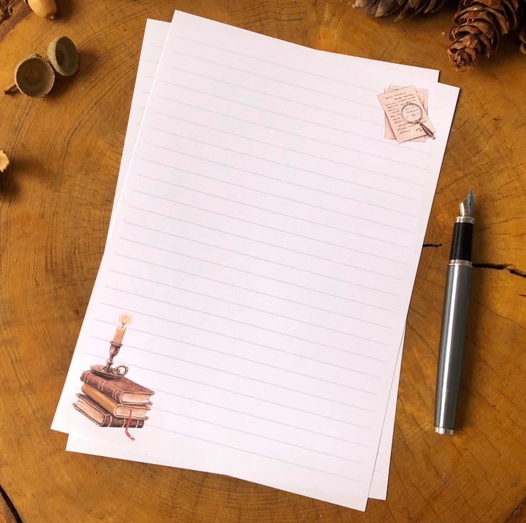 — The writing paper is made from 100gsm premium quality paper. You can choose the size and style of paper you would prefer, whether A4, A5, lined or blank. The blank options include a free guideline sheet.