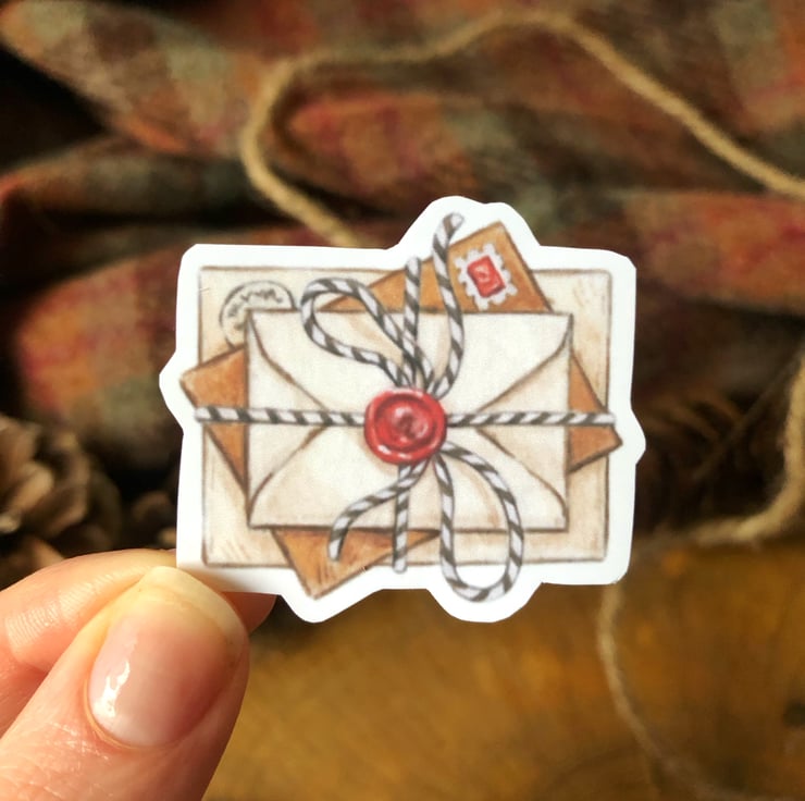 — The 2 vinyl stickers are made from 100gsm matte vinyl making them higher quality and more durable. They are individually cut by hand. (Books - 4cm x 5.4cm. Envelopes - 4.5cm x 3.9cm)
