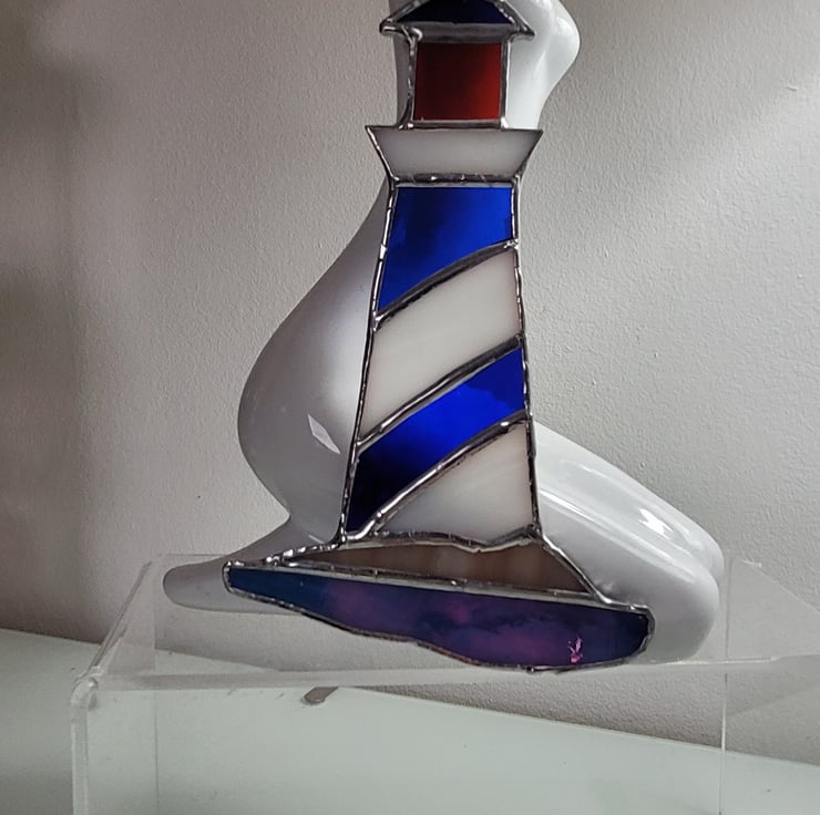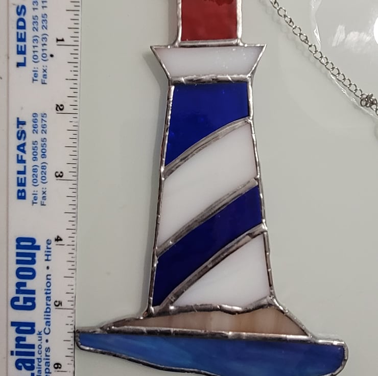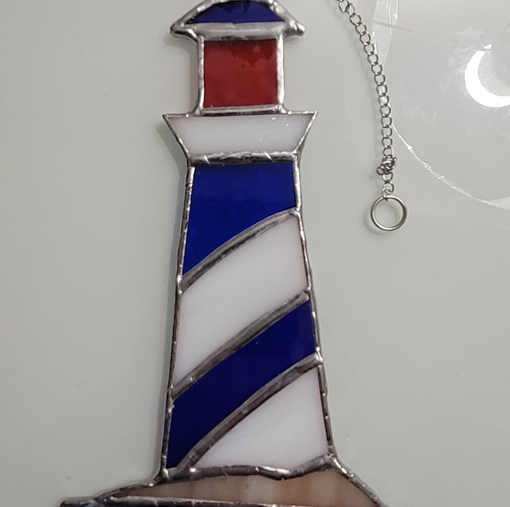 Handmade lighthouse suncatcher multicoloured nautical theme