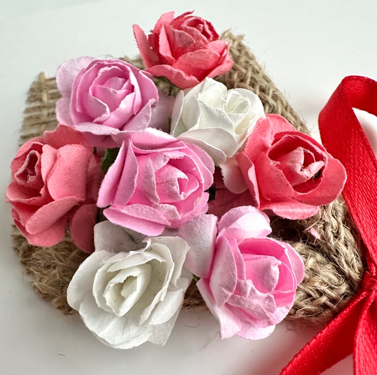 - Paper roses ( pink, white ) and a red ribbon for elegant look