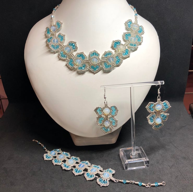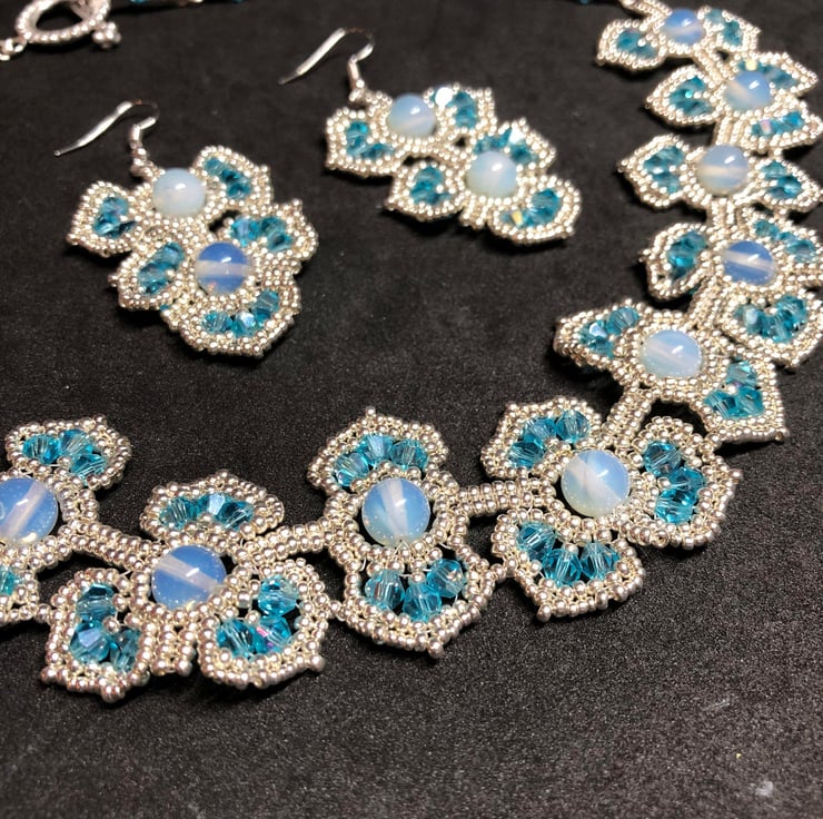 This is a stunning set. The unique pattern offers the promise of spring, while the fabulous Aqua crystals add a delicate touch of colour and glamour to the versatile set.