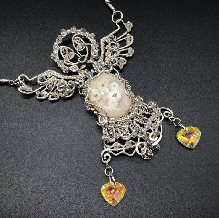Guardian Angel wire weave pendant with Solar Quartz and Swarovski Crystal