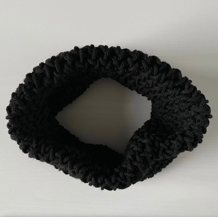 This Neck Warmer is handmade on a round loom and doubled over to provide light weight but chunky protection from draughts, keeping those chills away from your neck.