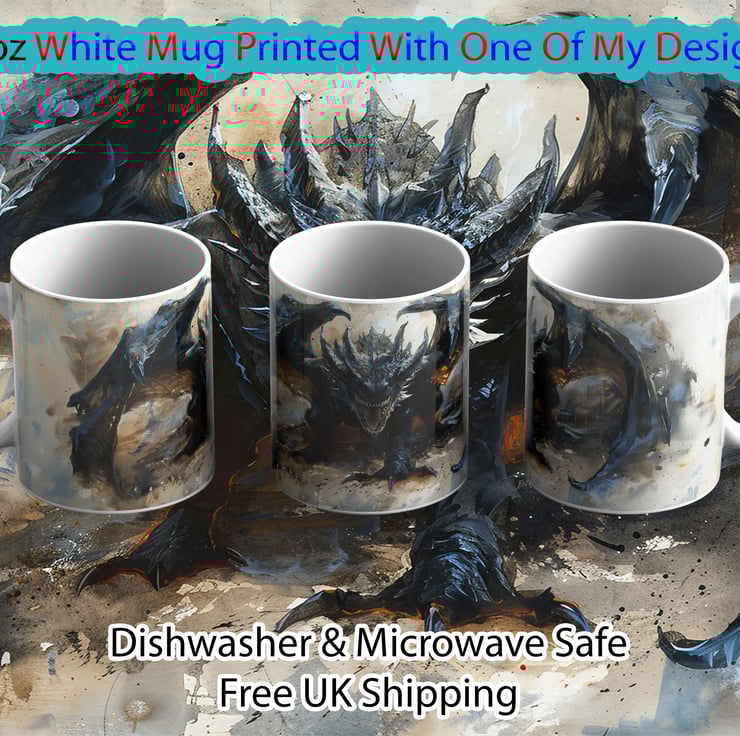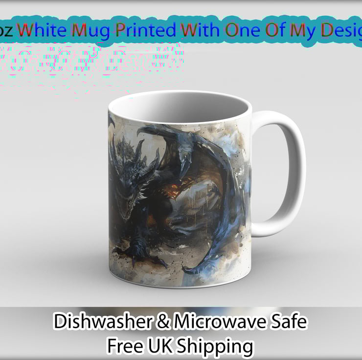 Made from high-quality ceramic, this mug combines durability with vibrant artistry. The glossy finish enhances the vividness of the dragon print, which wraps around the mug for a 360° display. The comfortable handle makes it ideal for enjoying coffee, tea, or hot chocolate, whether at home or in the office.