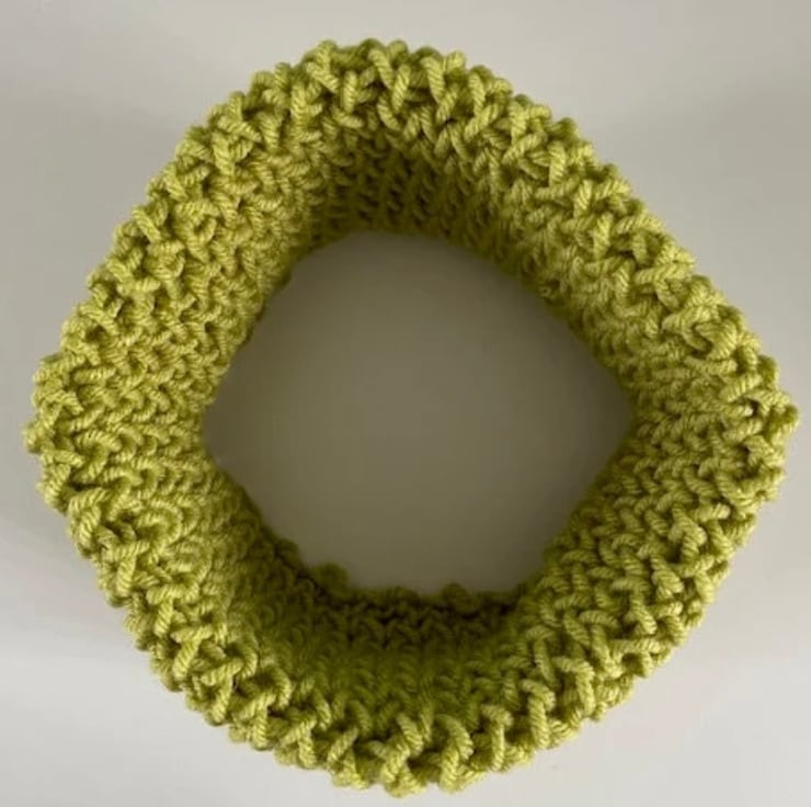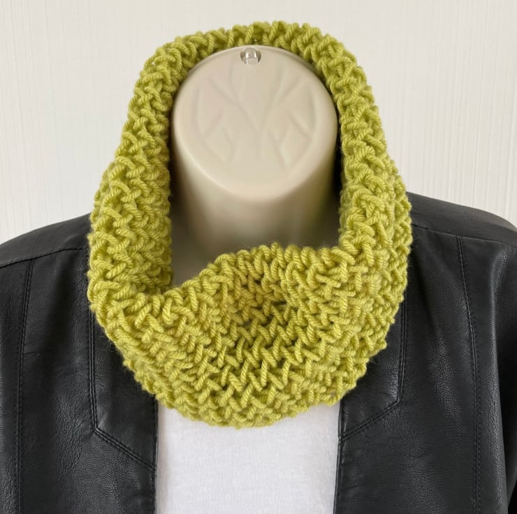 The close fitting neck warmer is made from 100% Acrylic yarn. The pattern does allow some stretch, and after use or washing it can simply be reshaped ready for the next time you want to use it.