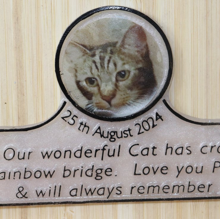 A heartfelt memory of the pet that filled your life. Send us a picture of your beloved one and we will cast your picture in to our unique style of memorial with your own choice of 3d text and sentiment.