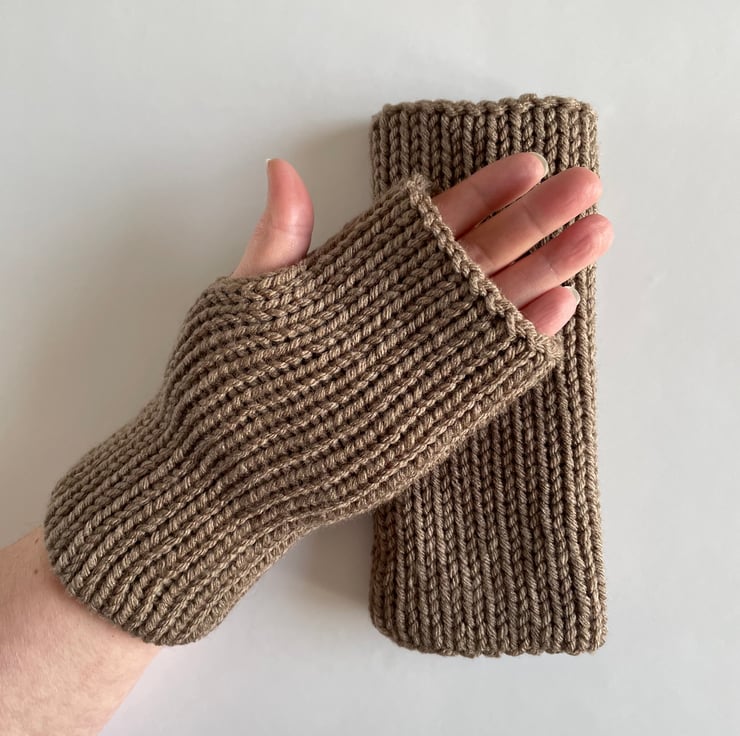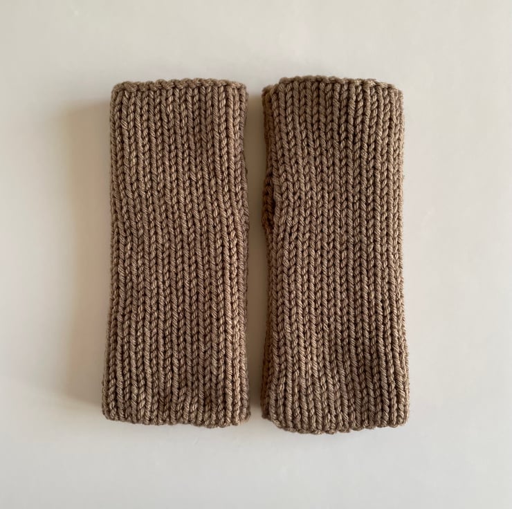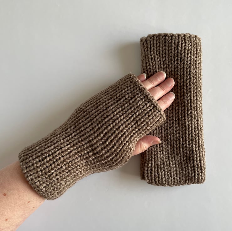 These fingerless gloves are double layered, so they will keep your hands warm and cosy. When you need to use your hands, simply place your thumb inside, pull them further down your arm and wear them as wrist warmers.