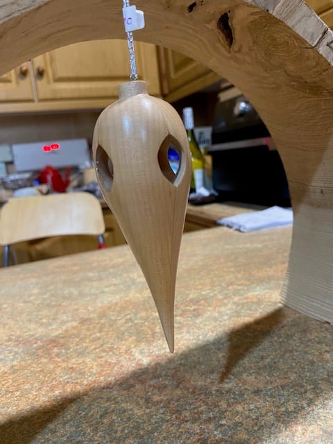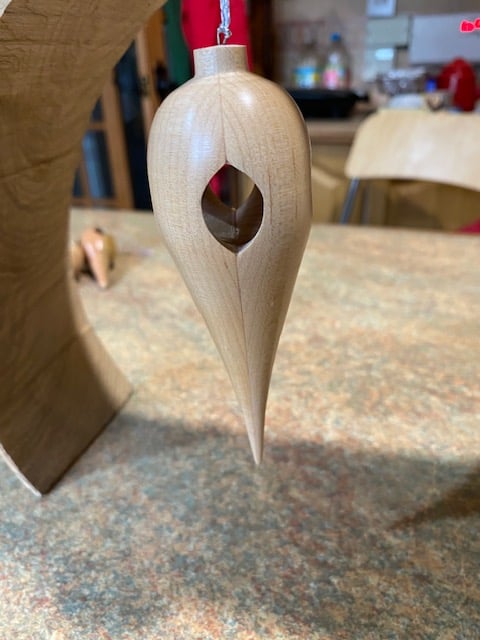 Turned twice with a lovely elegant shape. Inside out turning. Turned from Ash wood.