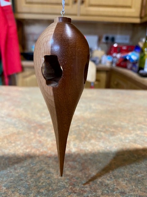 Turned twice from Oak and Sapele, lovely elegant shape, about 4" long.